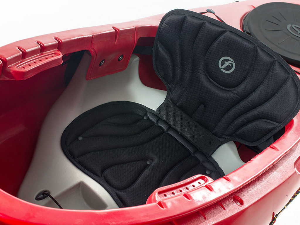 Uniwersalny jednoosobowy kajak turystyczny na rzeki i jeziora. Bardzo komfortowy, standardowe wyposażenie obejmuje anatomicznie wyprofilowane siedzenie pokryte elastyczną pianką.