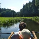 Mijamy kilka rozlewisk i przepływamy przez Jezioro Graniczne o pow. 18 ha. Widoczna z daleka wieża kościoła w Łubianie, mijamy kąpielisko oraz lejkowaty wypływ z jeziora.